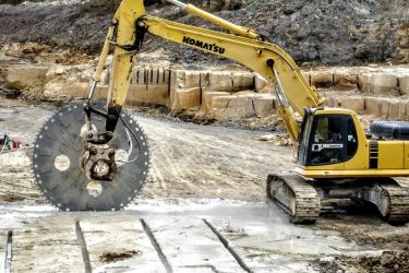 Taiere granit si alte materiale din piatra naturala: se folosesc utilaje speciale pentru taierea pietrei, rezultand o suprafata fara asperitati, se uzeaza foarte putine consumabile si sunt efectuate cu precizie mare. Excavatoarele dotate cu masini de taiat sunt perfecte pentru aplicatii din industria mineritului si in carierele de piatra, inclusiv pentru piatra de duritate mare( bazalt, granit). Masinile de taiat dotate cu discuri de taiere duble sau simple cu extensie ajustabila pot realiza taieri paralele cu precizie foarte mare. In zonele unde nu exista sursa de apa si materialele ce urmeaza a fi taiate nu au o duritate mare se pot utiliza discuri speciale dotate cu segmenti cu carbon.